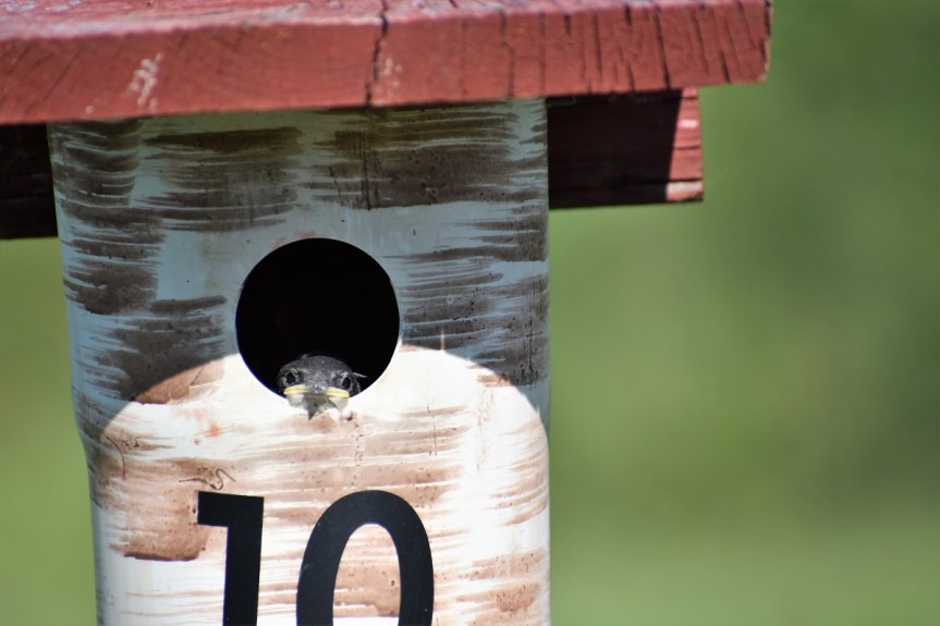 Anyway, I had to cross a railroad yard to get to the corner and each and every morning birds would swoop at my head. I had to swing my paper bag at them, just to get across several sets of tracks. They might have been swallows nesting nearby although I’m just guessing.