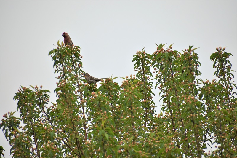 I caught a fair snapshot of a house finch male and female which might explain the nest, although I’m still puzzled for a couple of reasons.