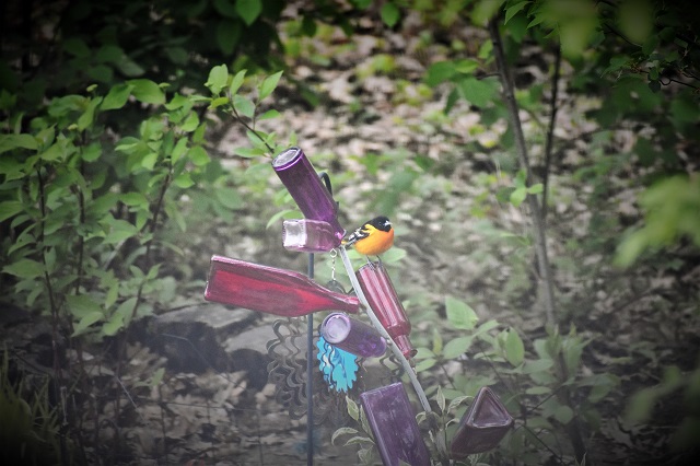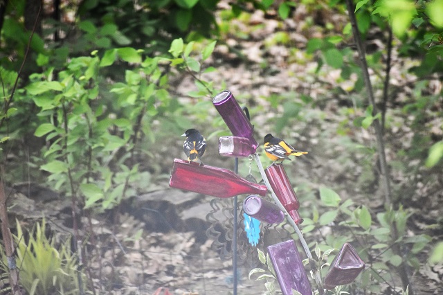 Now we’re starting to see Baltimore Orioles flitting around our garden. There were three of them (all males) and I could barely get snapshots of two. I doubt we’ll see nests. They build pretty high up in the trees.