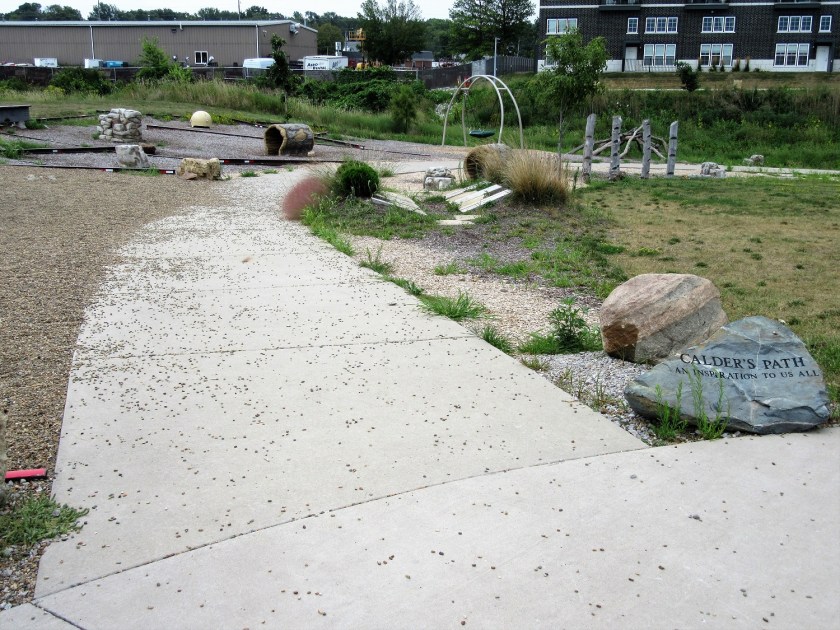 This was the first time we had ever visited Riverfront Crossings Park and we found something familiar there—a stone inscribed with the words Calder’s Path: An Inspiration to Us All. Pebbles were strewn all over the path. After all, no path is without stones. We frequently drive by a small and neatly kept neighborhood park called Calder Park many blocks away. It’s a memorial to a boy named Calder Wills, who passed away of leukemia several years ago. We never knew him or his family. Based on what I’ve gleaned on the web, Calder had big dreams. He was strong. He was a person who turned into a light.