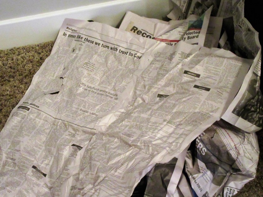 I thought of the other post I’d written for today. It’s just about a cribbage board in the shape of the state of Iowa that we got from Minnesota the day before yesterday. It came wrapped in a newspaper, probably the whole issue published about a month ago by the Morrison County Record in a town called Little Falls.
