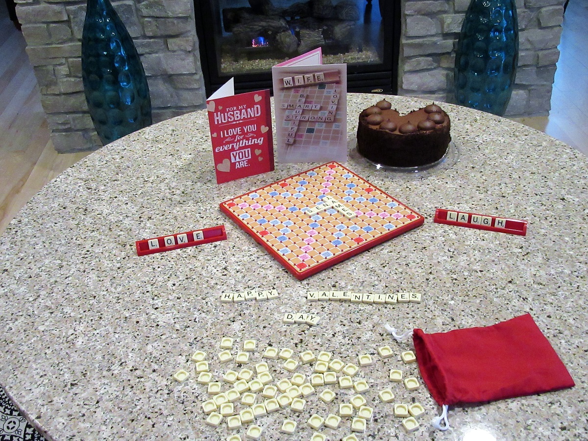 Anyway, Sena got a kick out of my Valentine’s Day card because it had a scrabble theme. The top line actually is made of 3-dimensional Scrabble tiles. I bought that card before I found the Tile Lock Scrabble game.