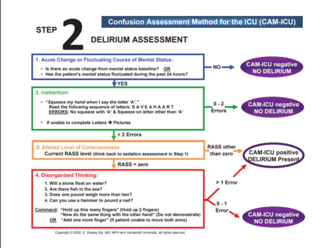 The CAM-ICU questions about thought disorganization have been outlined thoroughly, as in the picture below: