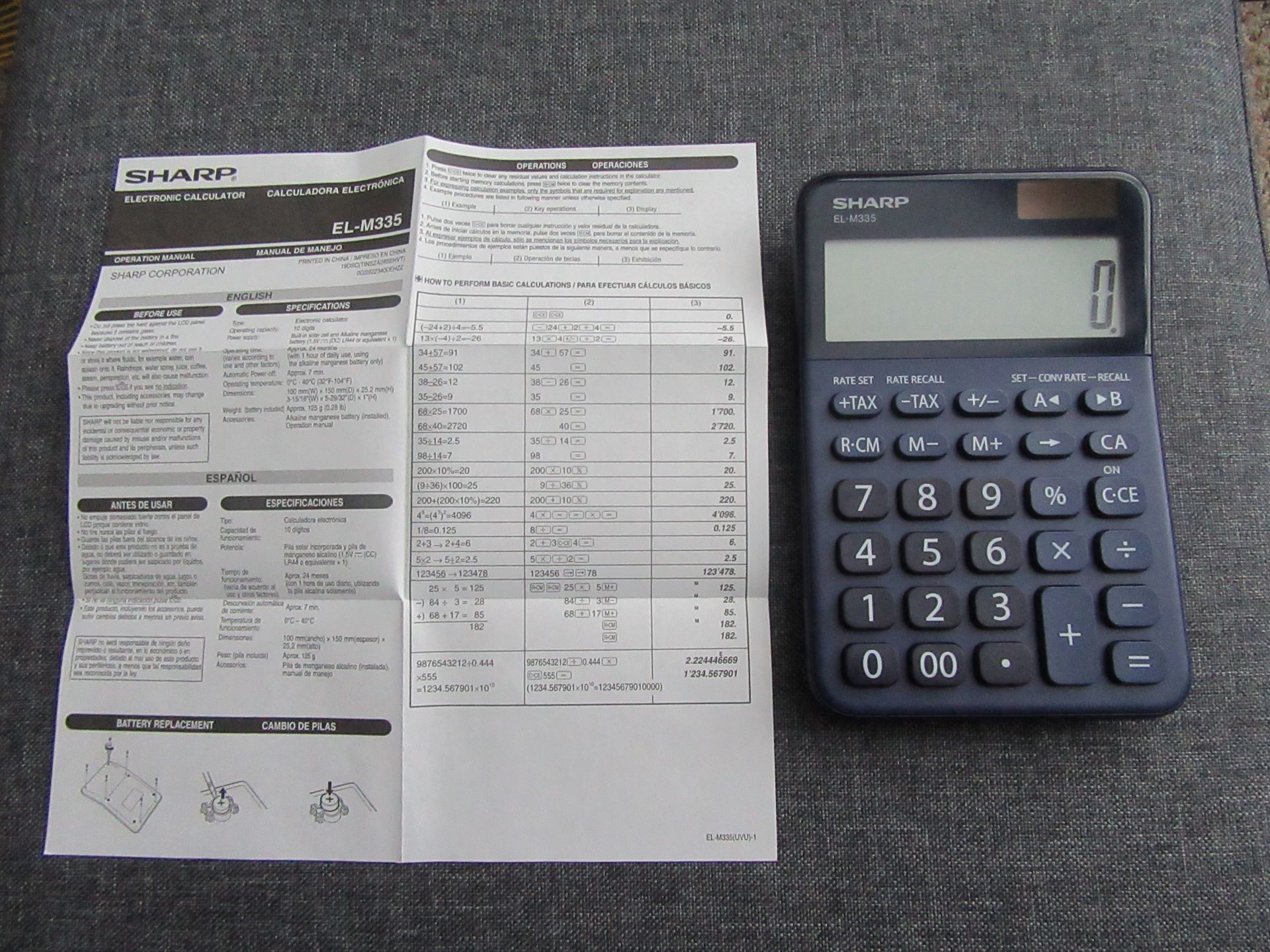 The Sharp EL-M335 actually uses a solar cell and a backup Alkaline manganese battery. I wouldn’t have been able to tell you that unless I used a magnifying glass to see the operation manual’s tiny print. It’s a good thing the display uses bigger characters.
