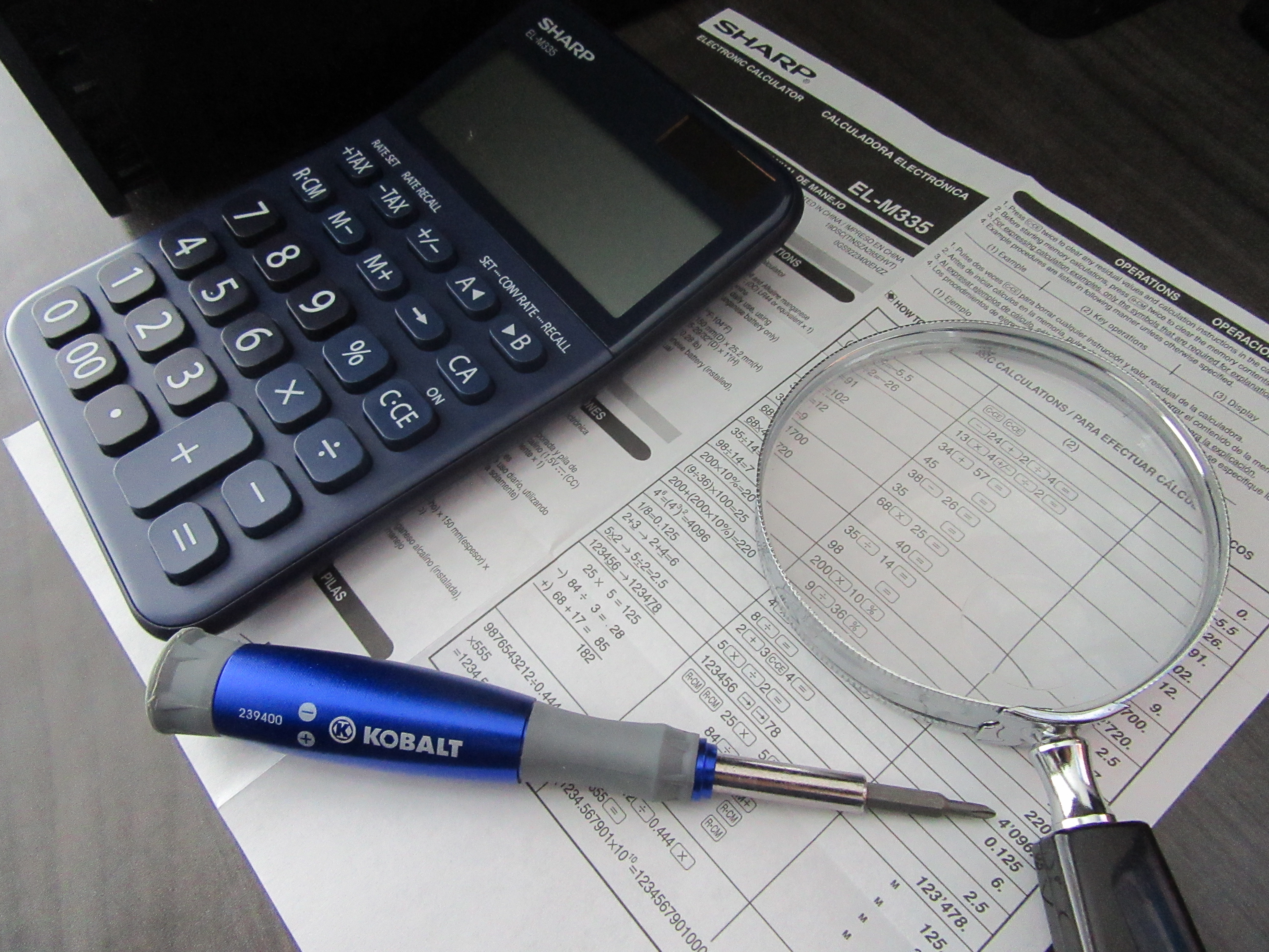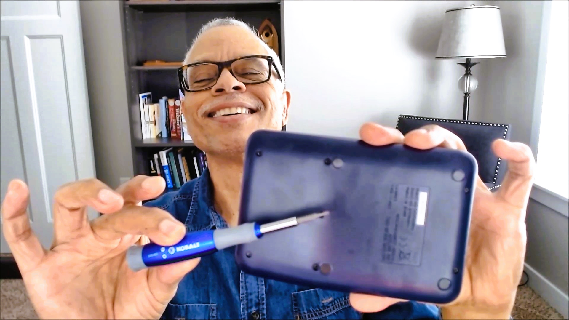 However, replacing the battery in the new calculator will require using a very tiny screwdriver to remove 6 very tiny screws. It’s a good thing we have a very tiny Kobalt screwdriver set with Phillips and flat head bits that you can store in the handle.