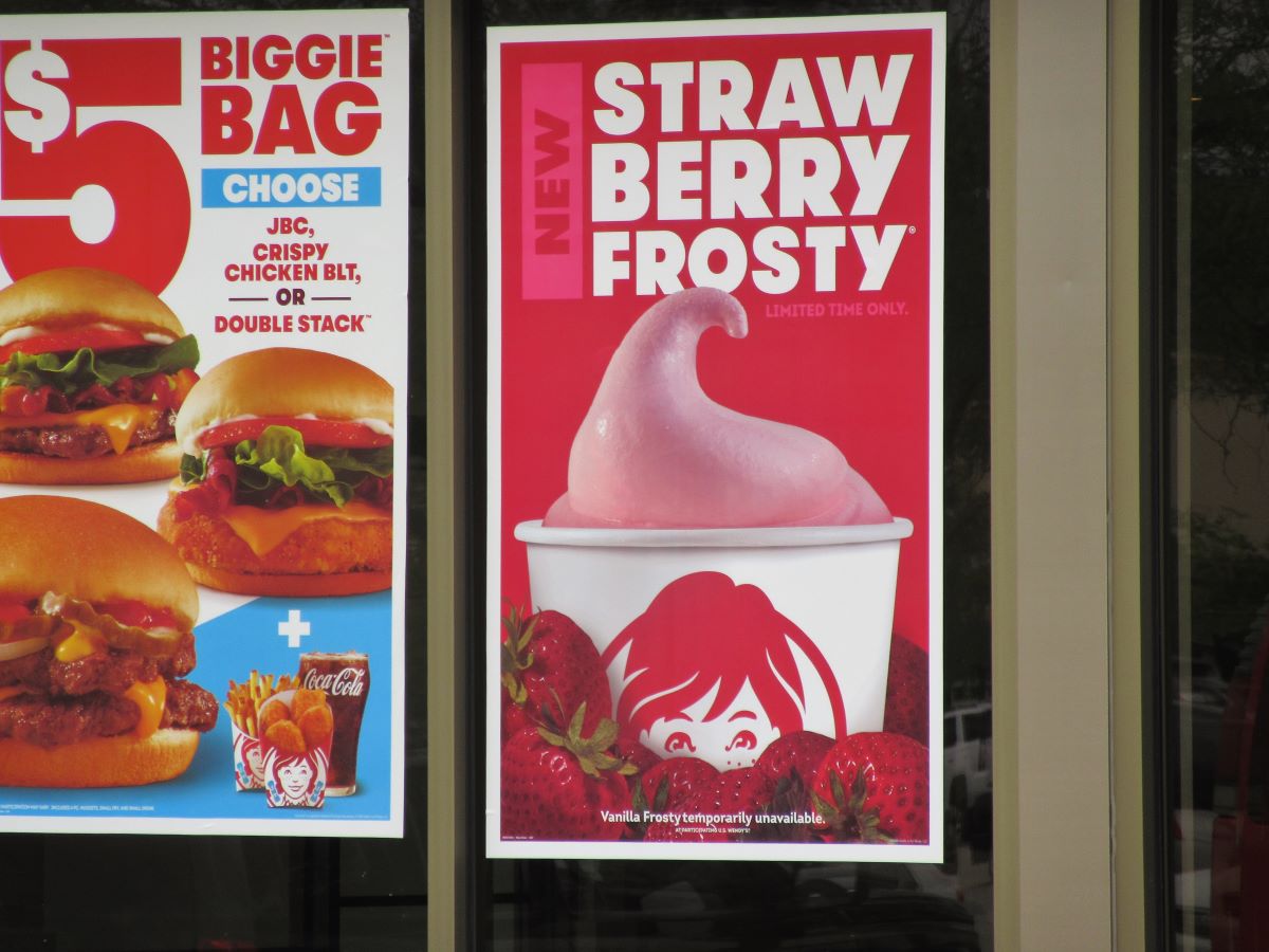 On the other hand, they tell us that my favorite, the vanilla Frosty, will be going away in order to make room for the strawberry. It turns out that vanilla is the base for the strawberry.