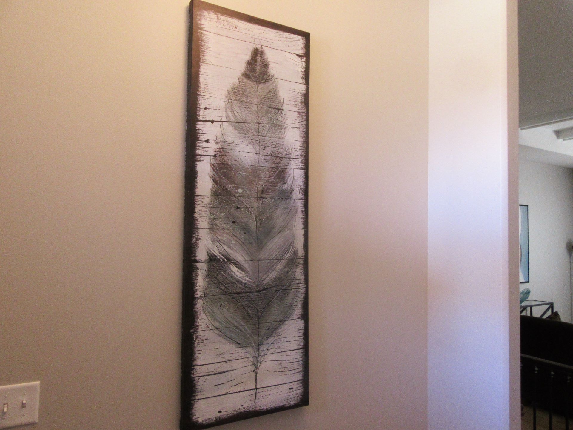 I’m at best ambivalent about hanging paintings. Sena purchased one called Stained Feather. It looks stained. I don’t always get it when it comes to art. Paintings are often hard to hang. There’s the whole thing with measuring the wall and the painting, attaching the hooks, and hanging it straight. I don’t have fun with it, frankly. But we like how it looks on the wall.