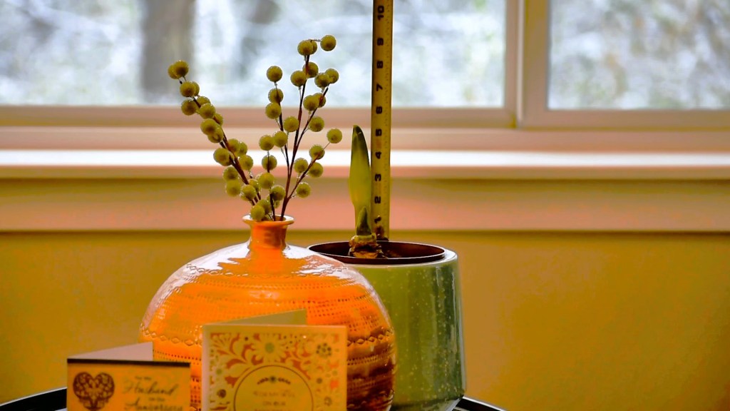 Sena got our Amaryllis plant shortly after a juvenile Cedar Waxwing lost its life by banging into our sun room window. That was on November 1, 2022. It’s sort of a remembrance of the little bird.