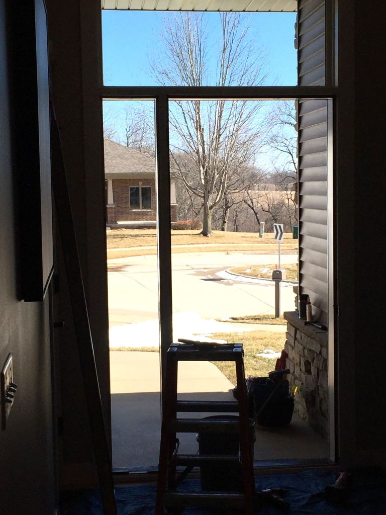 We got a brand-new front door today. Of course, because the old one had to be removed, it got a little chilly in the house. We didn’t mind because the new door is handsome and has pearl privacy glass.