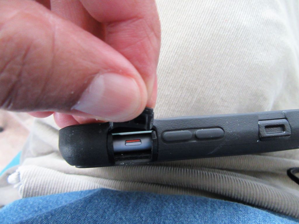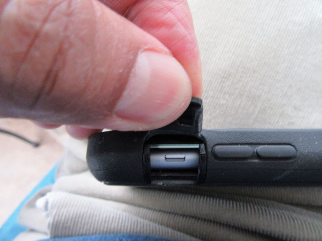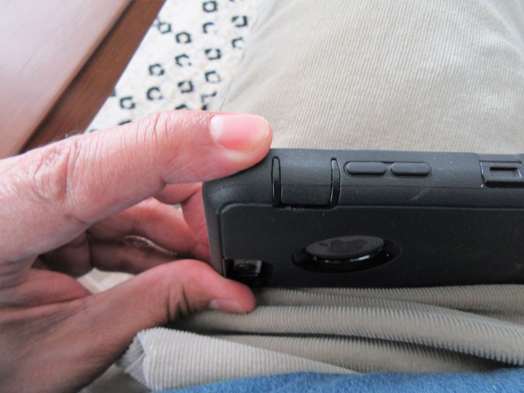 But I couldn’t see the switch. Then yesterday, for some reason I thought to look at my Otter box protector flaps. That was the “Duh” moment. It doesn’t belong in the “Eureka” category for obvious reasons. “Eureka” is for geniuses, “Duh” is for dummies.