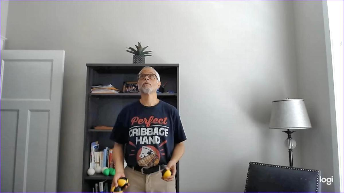 Sena is still practicing the basics of trying to introduce the third ball into a cascade pattern, just like I’m trying to get the third ball into the shower pattern. She thinks one to two minutes is long enough to practice, though.