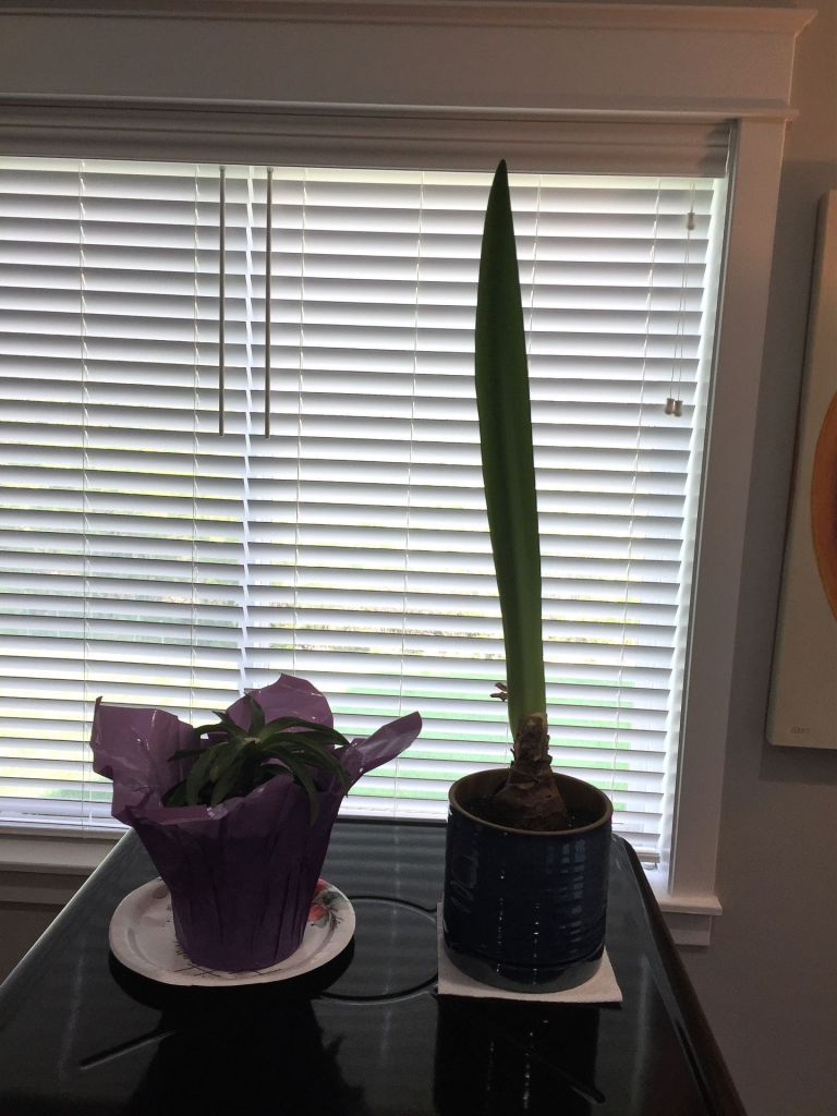 She is always on the lookout for something new to plant. I don’t always remember the exact names of them, but they’re very pretty. And the Amaryllis house plant stem is 22 inches tall!