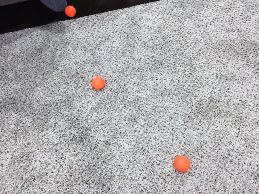 In sitting meditation, counting your breaths is generally frowned upon. On the other hand, counting my throws (especially out loud) during juggling actually helps me focus my attention. I see each throw as sort of like a single breath. I still have to consciously adjust my posture so that the “horizontal” pass doesn’t end up being more like an underhand throw. And when I modify the throws so they stay in the so-called jugglespace (not so close the balls bounce off my head, not so far out front I have to lunge for them), and space the balls out just right, I find it’s easier to get more throws in.