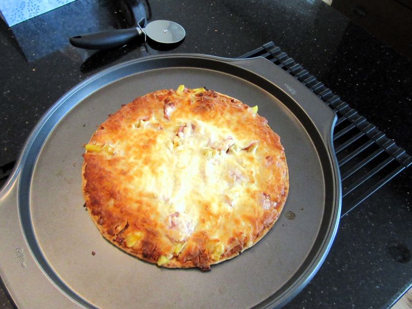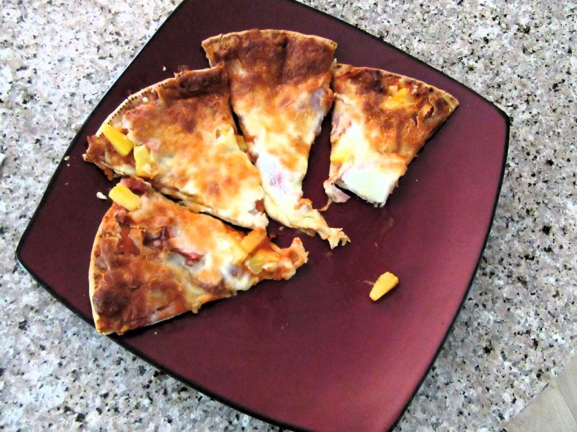 Well, we tried pineapple pizza a couple of months ago and the other day we tried it again. This time, as promised, we tried the Lotzza Motzza version. We didn’t doc it up. We thought it would be the best.