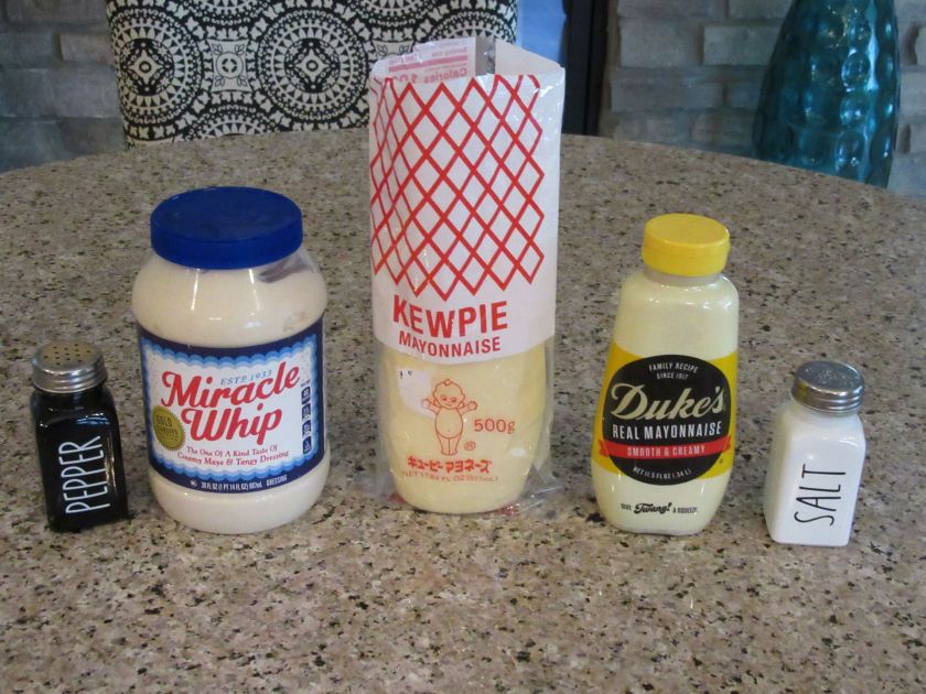 Big day of mayo taste testing yesterday. We broke out the Kewpie Mayo, Duke’s Mayo, and Miracle Whip. Actually, we got the two mayonnaise brands out for dishes Sena had planned. We got the Miracle Whip out just to compare the taste of all three.