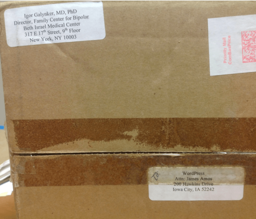 It arrived at my office at The University of Iowa Hospitals & Clinics in 2011. It was in a box addressed to: