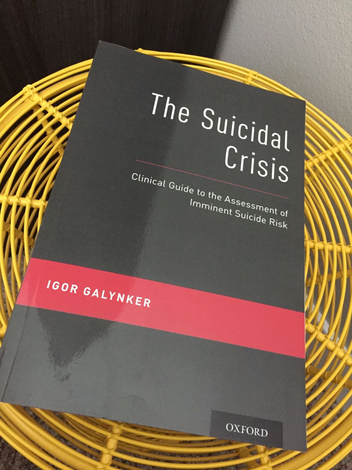 I was looking at my bookshelves and found the copy of the book, “The Suicidal Crisis: Clinical Guide to the Assessment of Imminent Suicide Risk.” It was written by Dr. Igor Galynker. It’s a fit topic for this month because September is National Suicide Prevention Month.