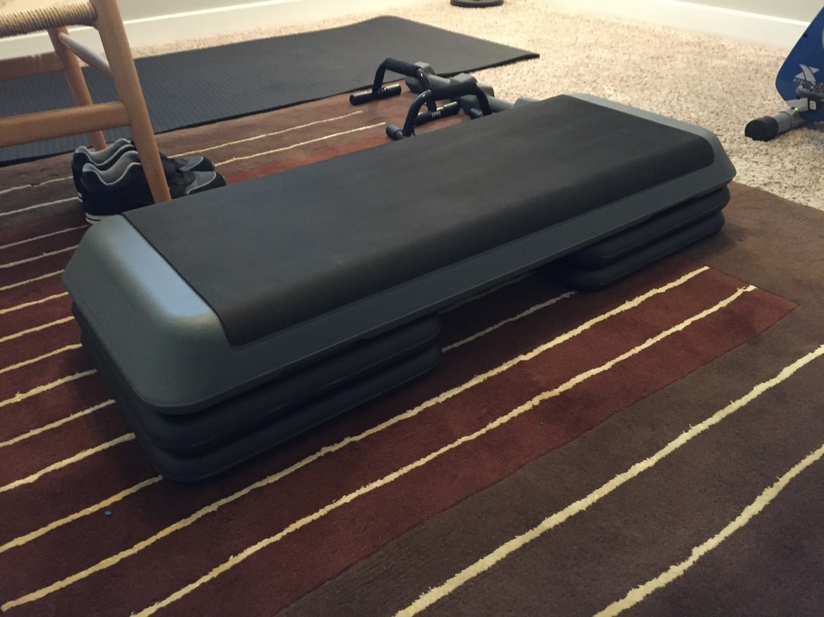 Yesterday we got the new aerobic step platform for cardiovascular health enhancement exercise. As I reported in October, climbing stairs can be very helpful in promoting cardiovascular health. This article summarizes the findings. At least 5 flights (around 50 steps of 10 stair steps) is said to be beneficial.