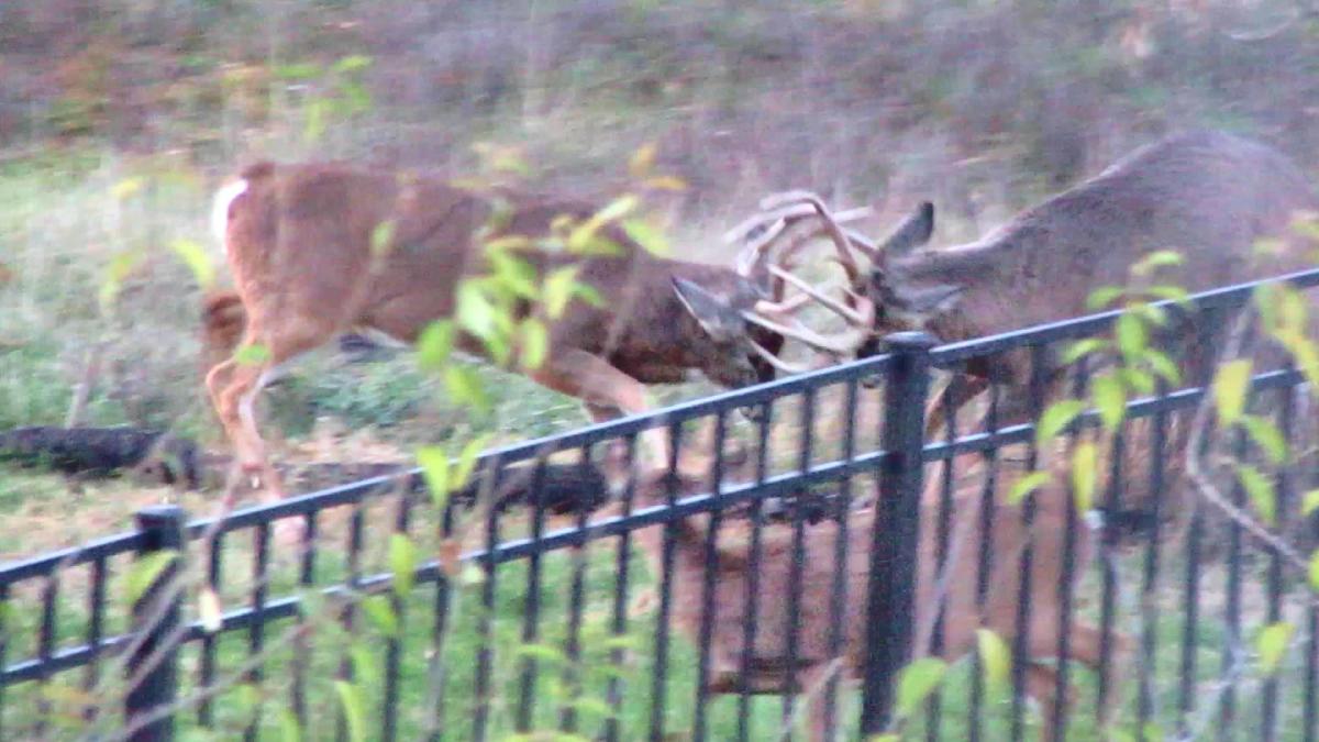 I caught sight of some buck deer contending for some does out in the clearing behind our house. This is probably what you might call the rut for white tail deer. The bucks do a lot of jousting for access to the does. But clearly, the does decide.