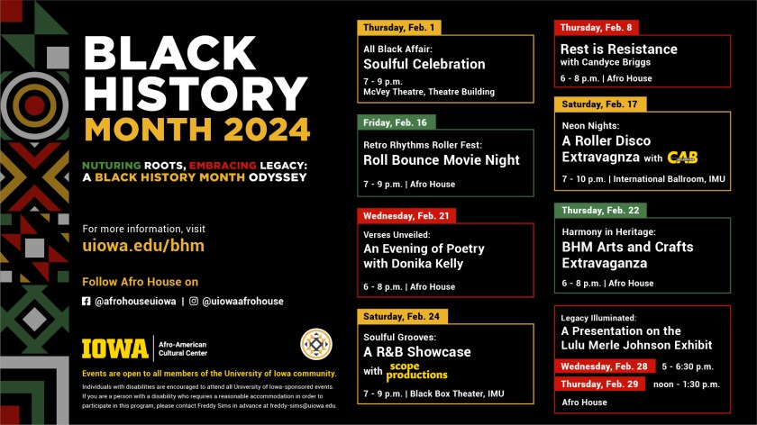 The Afro-American Cultural Center in Iowa City has many activities scheduled for Black History Month 2024. Check it out!