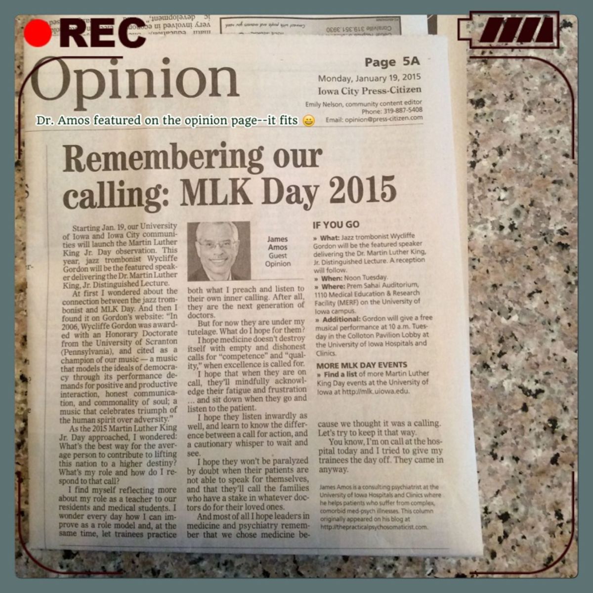 I wrote a post entitled “Remembering Our Calling: MLK Day 2015.” It was republished in a local newspaper, the Iowa City Press-Citizen on January 19, 2015. And I reposted it in 2019 on this blog.