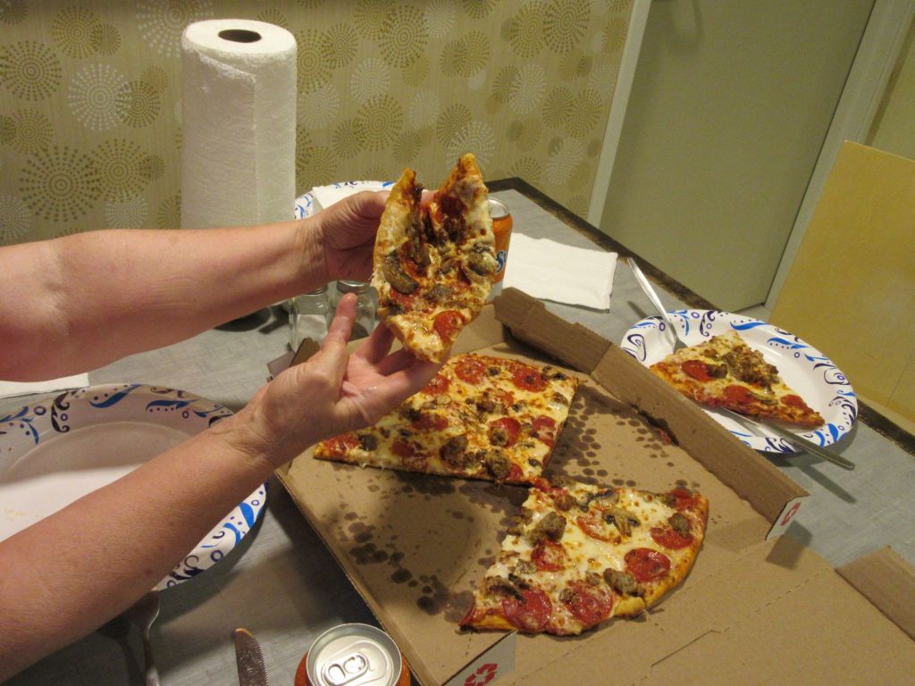 The other day, we tried a large Domino’s New York style pizza. You may have seen a recent commercial in which focus group members at first aim criticisms at Domino’s pizza until the leader springs the new pizza on them without telling them what brand it is. After they rave about it, the leader tells them (surprise!) it’s the new foldable New York style pizza. They rave about it.