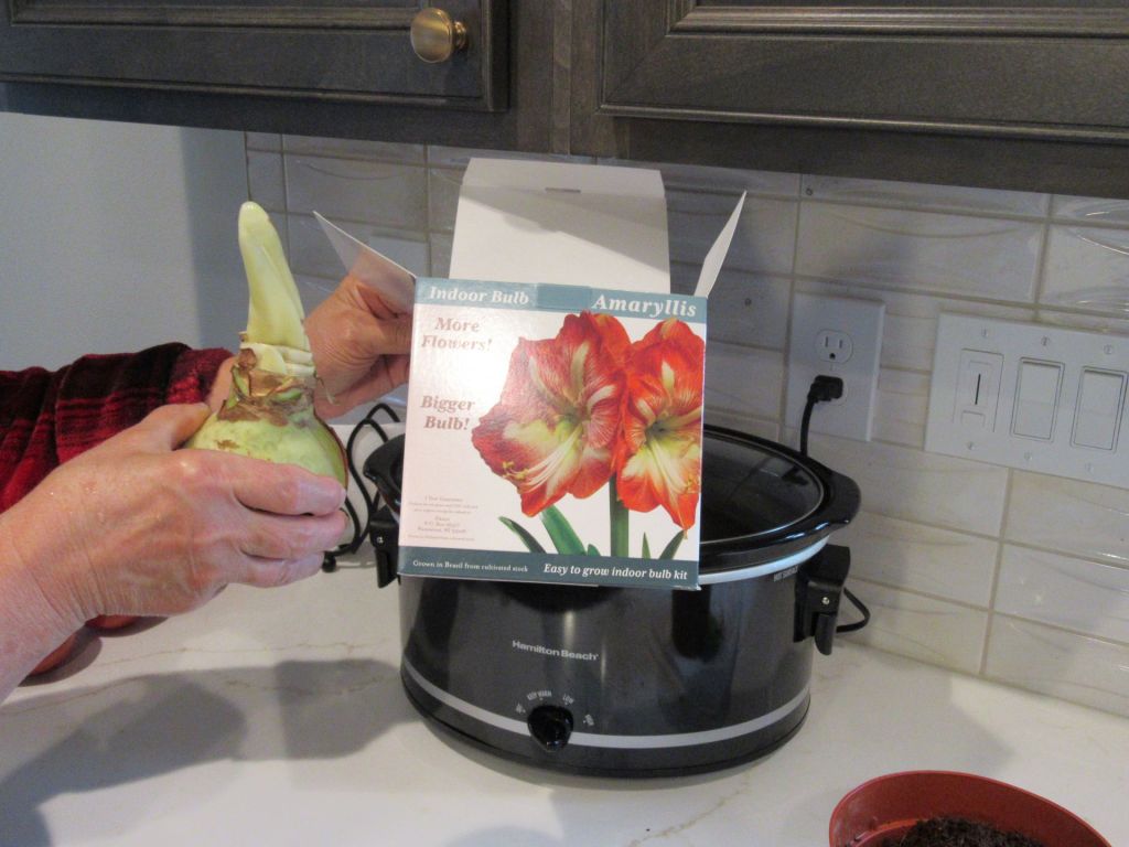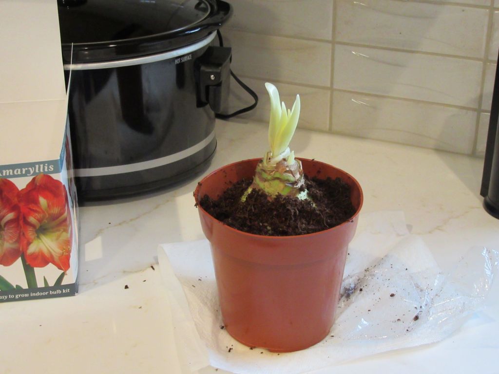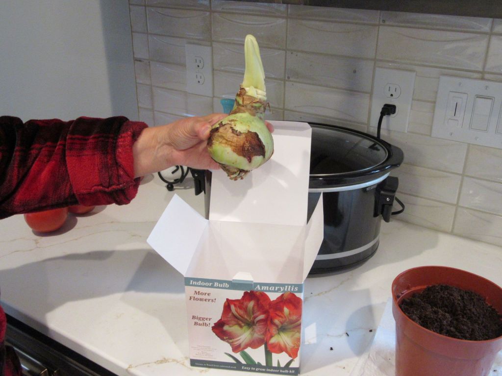 Today, Sena got another Amaryllis Star of Holland bulb. We got one a couple of years ago and it grew like you wouldn’t believe.
