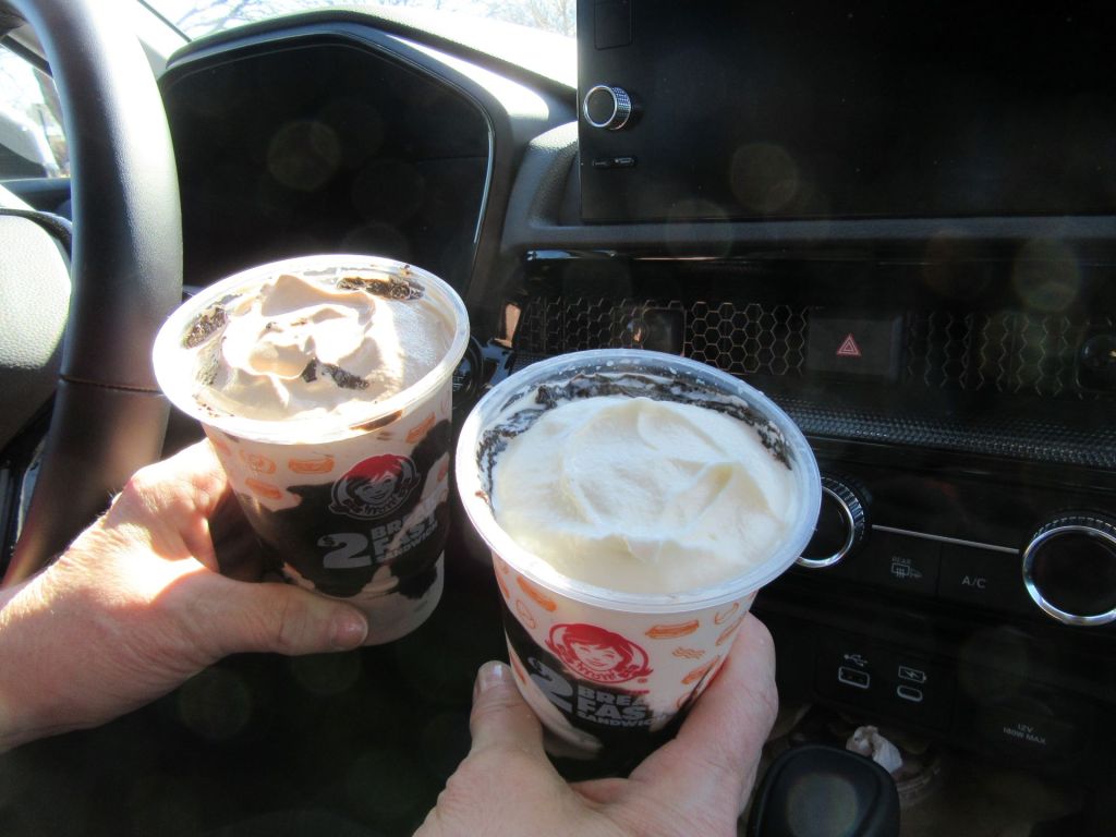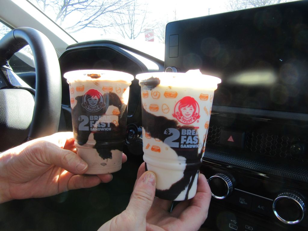 We heard that the Girl Scouts would be out selling their famous cookies the same day at booths outside different stores across Iowa including Iowa City, but we couldn’t find them that day. Maybe it was because it was a little cold to be standing outside in a booth. Interestingly today, the girl scout didn’t know this whole idea was a collaboration between Wendy’s and the Girl Scouts of America.