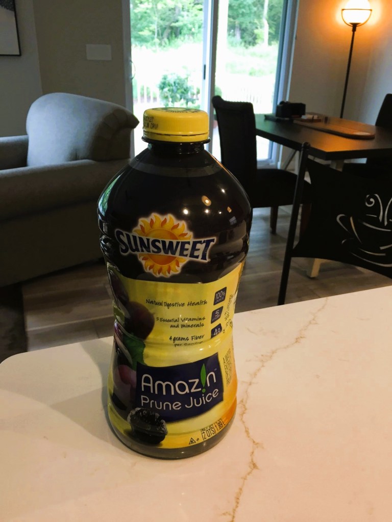 We were having a prune juice moment early this morning. I didn’t know Sena was going to buy it about a week ago. I’m not having any problems with getting enough fiber in my diet. I draw the line at prune juice and also Metamucil.