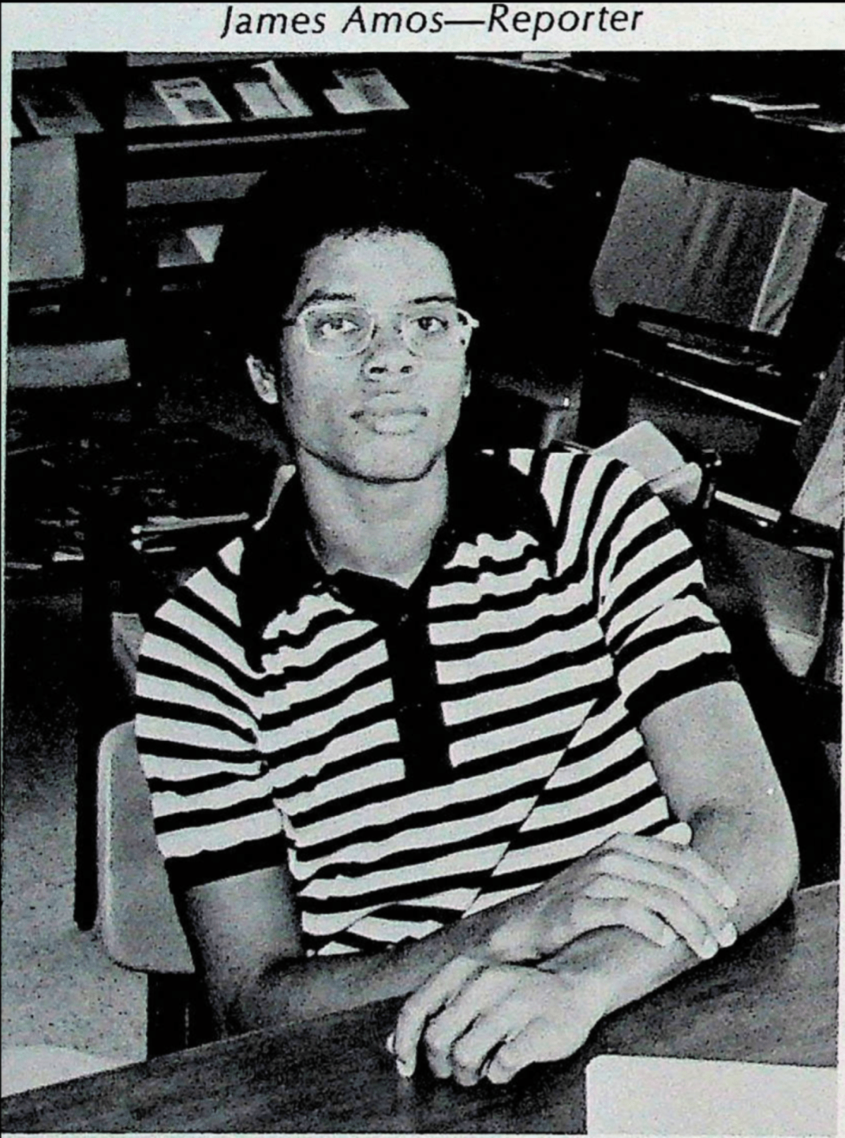 What’s also funny is that the caption above my picture says “James Amos—Reporter.” This meant that I was contributing to the college newspaper, The Ramshorn Journal. Funny thing is, I couldn’t remember writing anything for it.