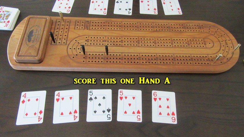 We didn’t have flushes. We scored them and did pretty well. I missed one of the fifteens on hand B. We checked our results, so we know the right answers.