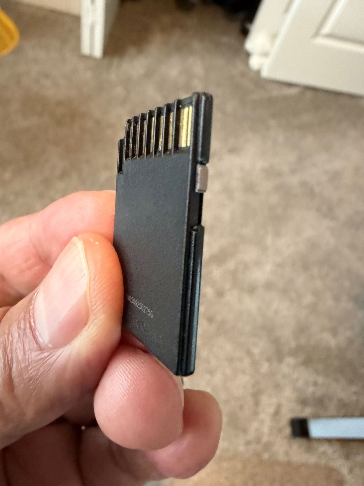They both had the same problem—a loose locking switch on the card which is supposed to control whether the card is in a locked or unlocked position. If it’s locked, it’s impossible to upload photos and video from the camera to your computer.