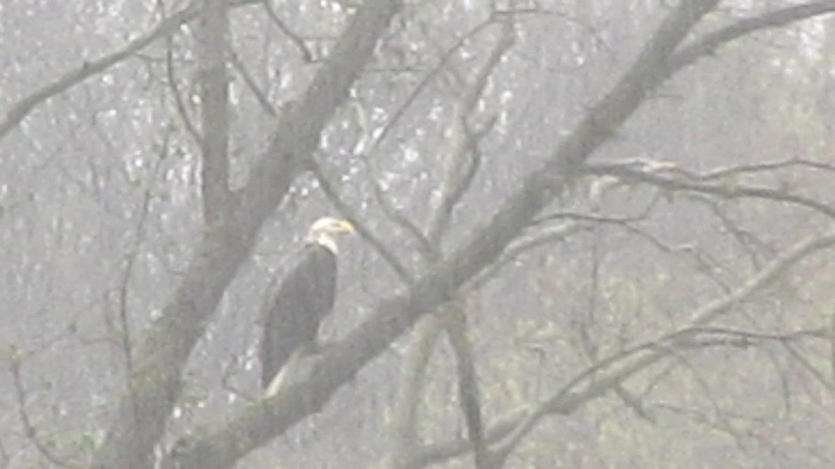We saw not only the Red-tail Hawks today, but a bald eagle to boot. The hawks were making eyes at each other and the eagle was making colonic bombardments. They were getting soaked.