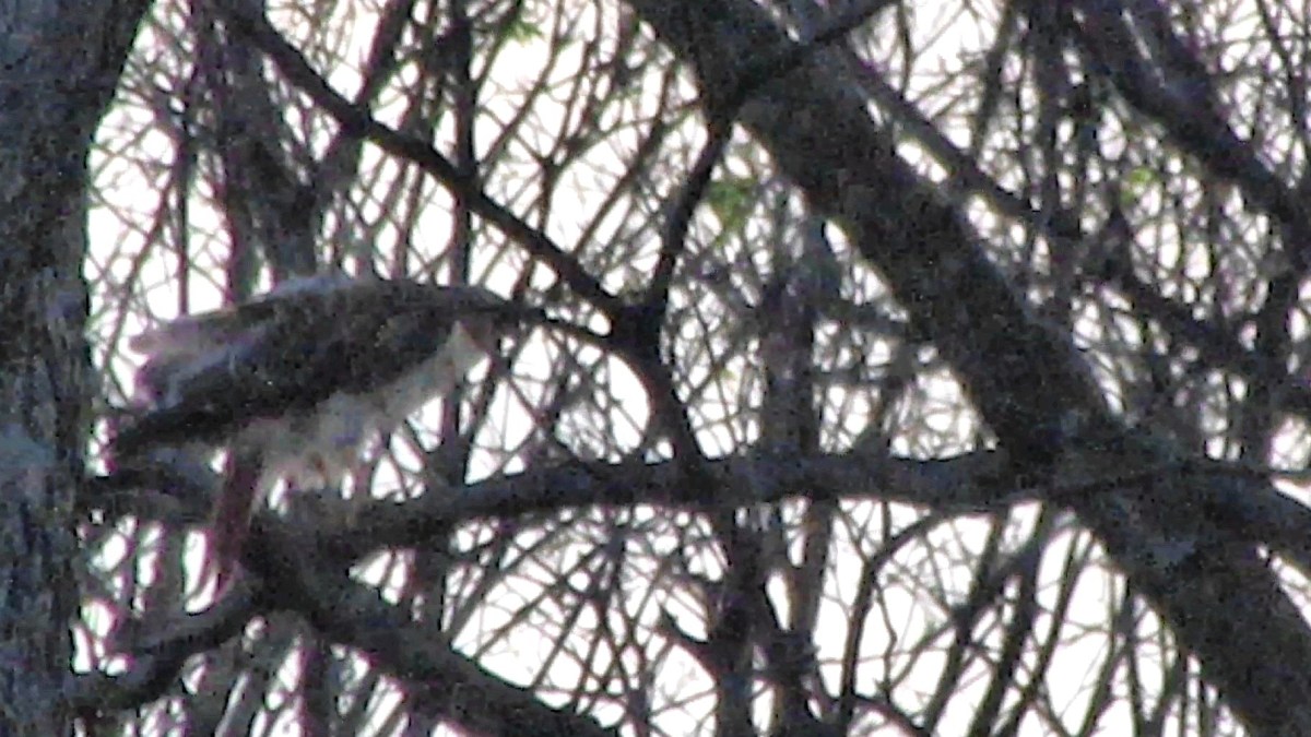 Early this morning, we saw the Red-tailed hawks trade places in the nest. This gives the mate a chance to grab a bite to eat while the other incubates the eggs we hope are in there.