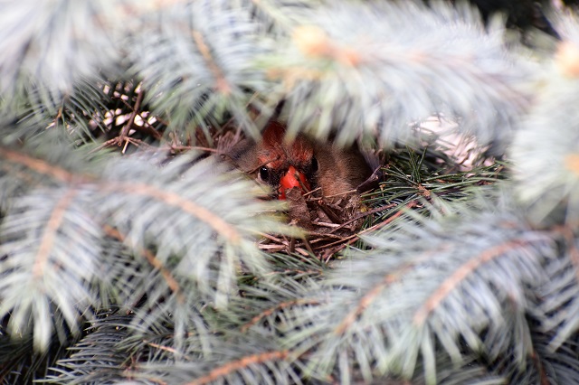 Anything can happen. Last year, I think a cat might have made off with at least one of the baby robins who hatched from a nest in the same tree the cardinals are in this year. We don’t know for sure if either of the two chicks actually fledged. I’ll keep you posted.