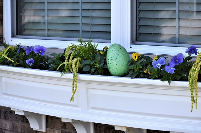 My wife is pretty busy in the garden and pointed out that I don’t have any shots of the pansies. They’re a sure sign of spring, along with the daffodils and tulips—and cavorting birds leading to many eggs.