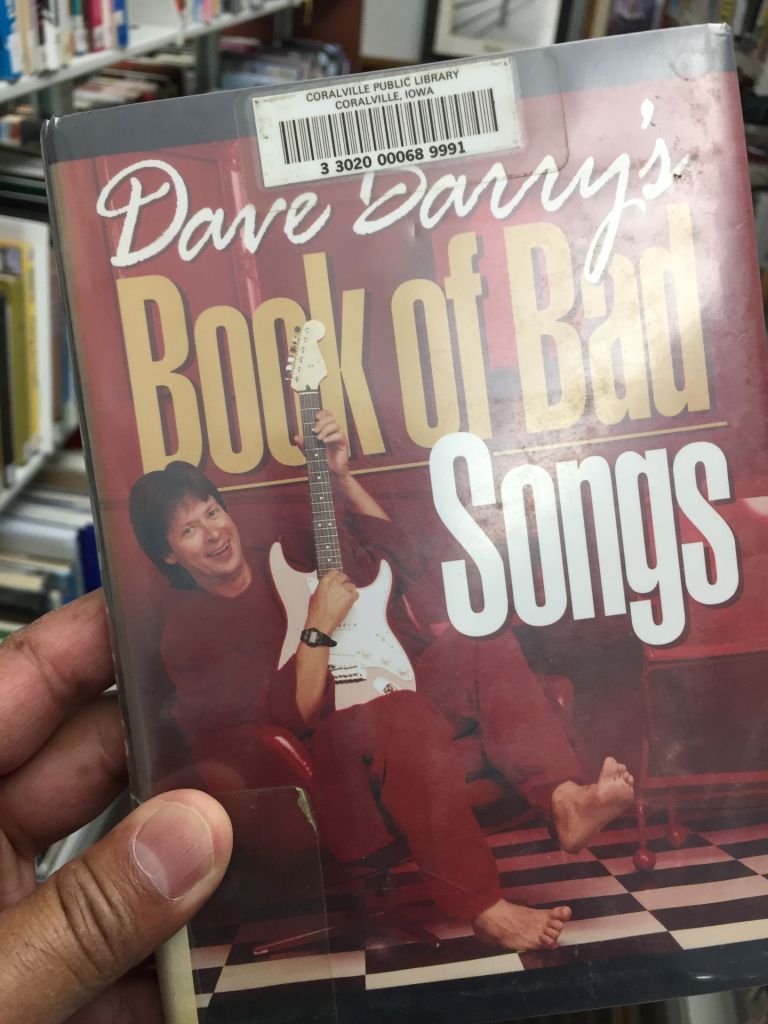 In fact, after I found one of Dave Barry’s books, “Dave Barry Book of Bad Songs,” (published in 1997; I had a copy but it got lost in a move) I asked one of the librarians about the old rule I learned as a kid. You might remember it too if you’re old enough. When you pick a book off the shelf and go to a reading room to look it over—can you just put it back on the shelf where you found it or do you have to give it the librarian who will reshelve it?