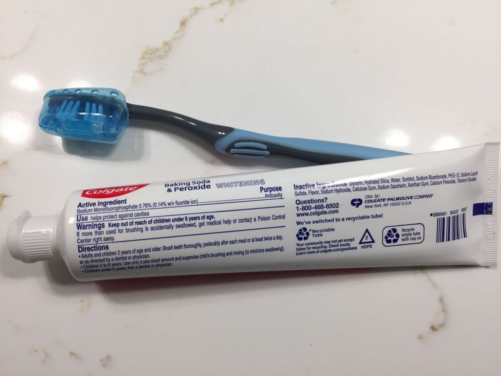 The dental hygienist also suggested I try using a tongue cleaner and gave me a free one. I’d never heard of a tongue cleaner before. The package advertisement (in English, French, and Spanish) says it’s for combatting bad breath, although the dental hygienist assured me in 6 different languages that she didn’t detect that problem in me.