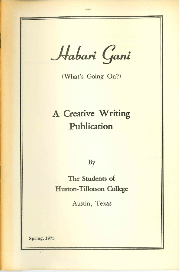 One of the products of that program was Habari Gani, a poetry anthology created and supported by the HTU student government and sponsored by Dr. Porter. “Habari Gani” is Swahili, which means “What’s going on?”