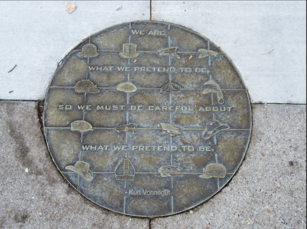 The other thing writing education at the University of Iowa reminds me of is the Iowa Avenue Literary Walk. There are several plaques along Iowa Avenue which honor famous authors who had Iowa connections, often through the Iowa Writers Workshop. My favorite is one by Kurt Vonnegut, a former teacher at the workshop.